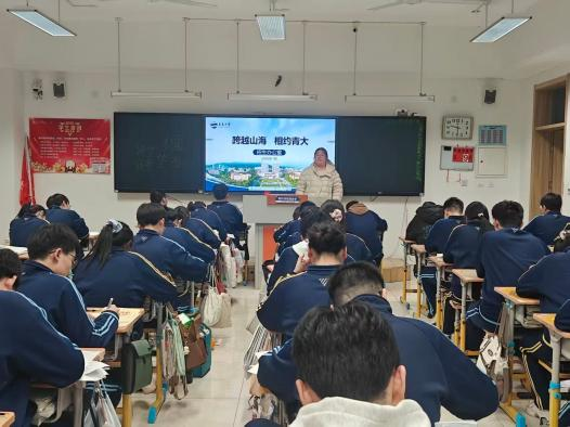 2025级本科生闫清馨前往山东省枣庄市第一中学,面向高三在校生开展招生宣传。活动筹备阶段,闫清馨精心撰写宣讲文稿,细致核查宣传物料,并主动与校方对接,确保宣讲活动有序推进。2月2日,宣讲正式开展,闫清馨围绕青岛大学招生计划、历年录取分数线、师资力量及推免政策等核心内容进行精准解读,有效地打破了同学们的信息差。宣讲结束后,闫清馨耐心耐心解答了高三学子的提问,获得了良好的活动反响。