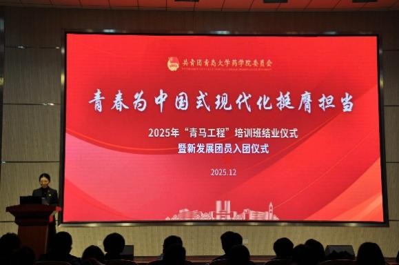 2025年12月25日,青岛大学药学院“青马工程”培训班结业仪式暨新发展团员入团仪式在浩园医学教育综合楼学术报告厅顺利举办。学院辅导员、团员青年代表、本期“青马工程”培训班全体成员参加。